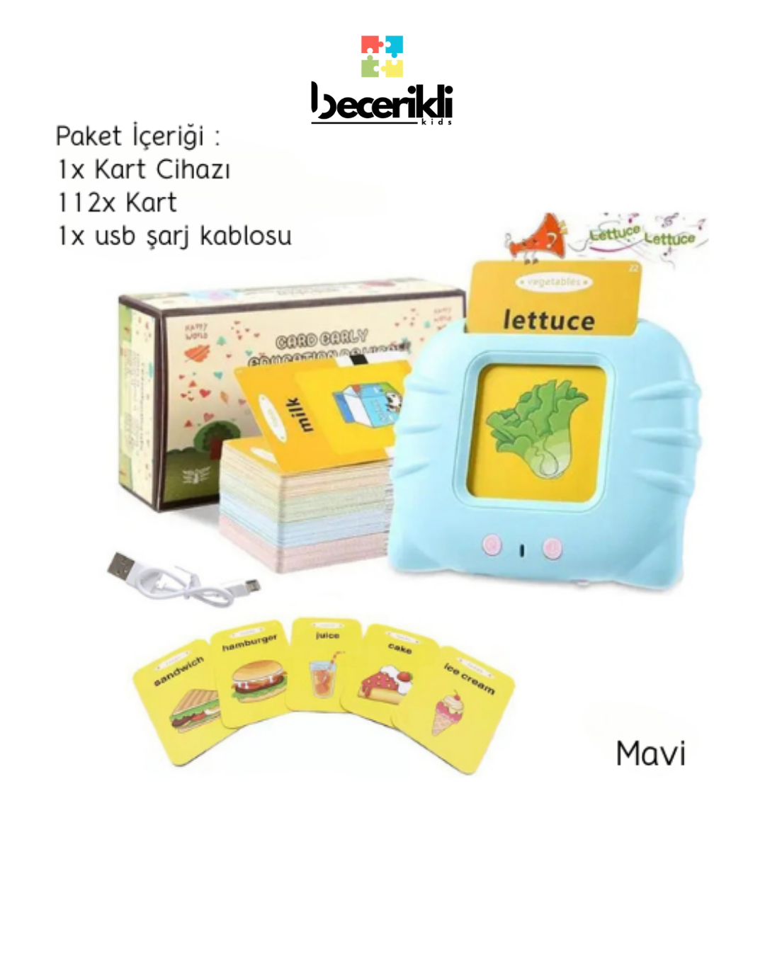 Kartlardaki kelimeler, küçük çocukların her gün karşılaştığı meyveler, nesneler, araçlar ve renkler gibi yaygın öğelerdir.
