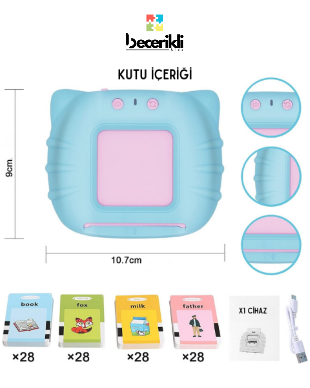 Konuşan Kartlarım™, tek bir şarjla yaklaşık 4,5 saat kullanılabilir.